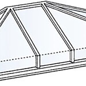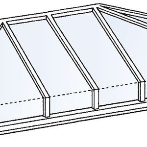 - Regenrinne: dreiseitig, Typ 1: bis 320 cm Dachbreite, Typ 3: größer als 320 cm Dachbreite