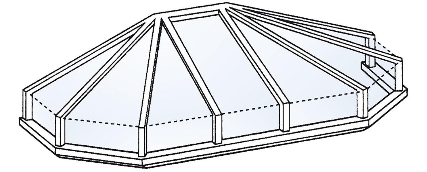 Kristall 7.3: Pyramidendach 6-eckig lang mit Abkantung