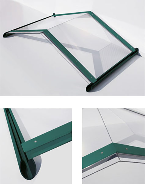 - Standardglas: UV-beständiges Polycarbonat farblos 6 mm, gekanntet