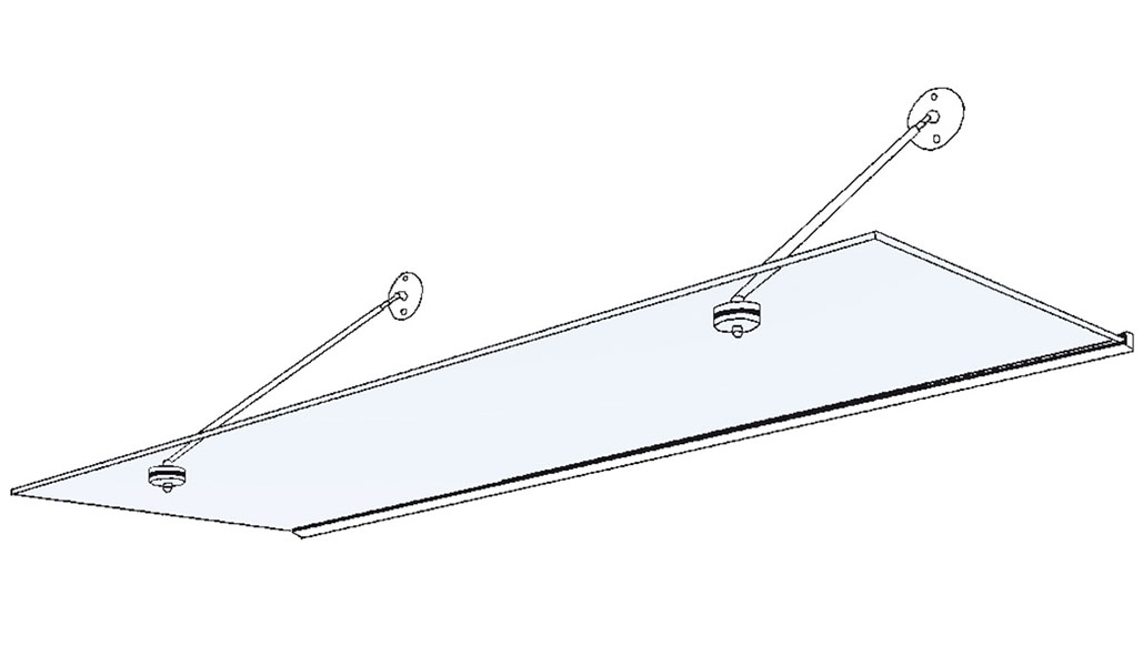 - Wandanschluss: U-Schiene aus Edelstahl; 4 Befestigungen je Wandteller