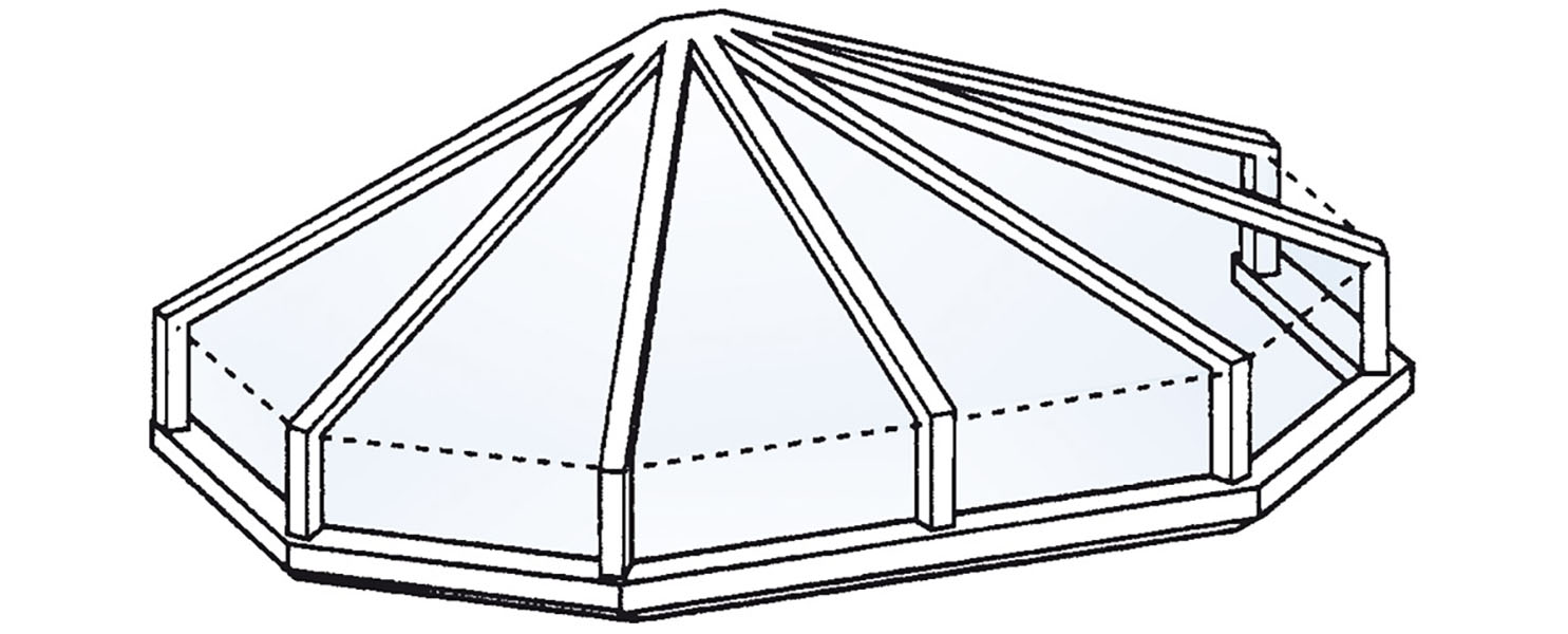 - Roof covering: UV- resistant polycarbonate plain colourless.