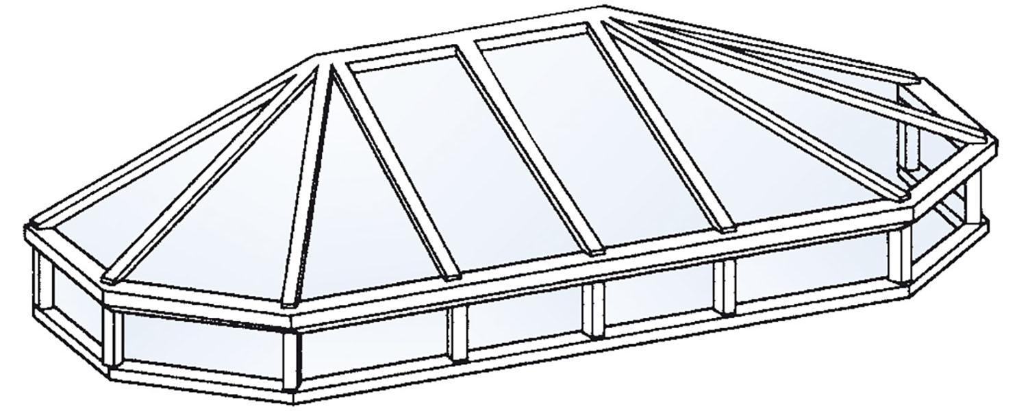 Kristall 7.2: Pyramidendach 6-eckig lang mit Unterlicht