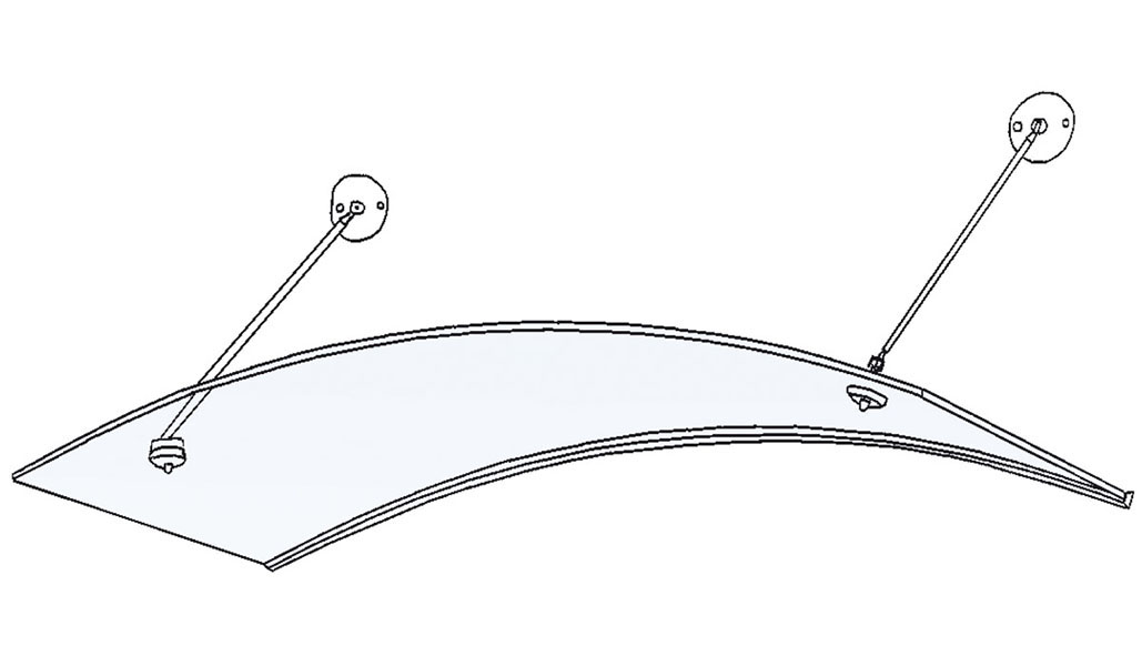 Quarz 1: Ganzglas-Pultdach mit Edelstahl-Zugstäben